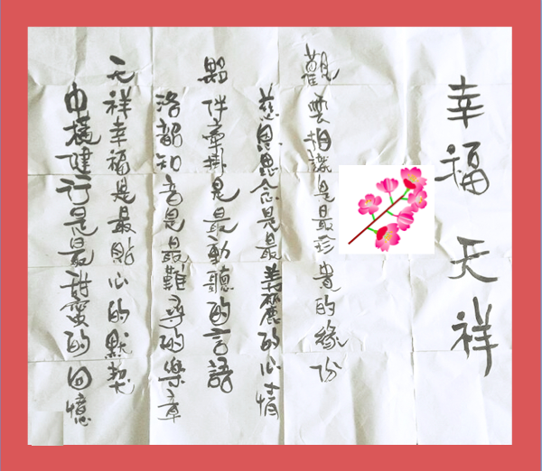 因為這樣大的海報,除非用像拖把這樣大的筆,是很難一筆完成的,這樣的規劃只能是開始,為了小心起見,我利用A4大小的紙,做出1/16大小比例的版本,而櫻花的部分就用貼的。